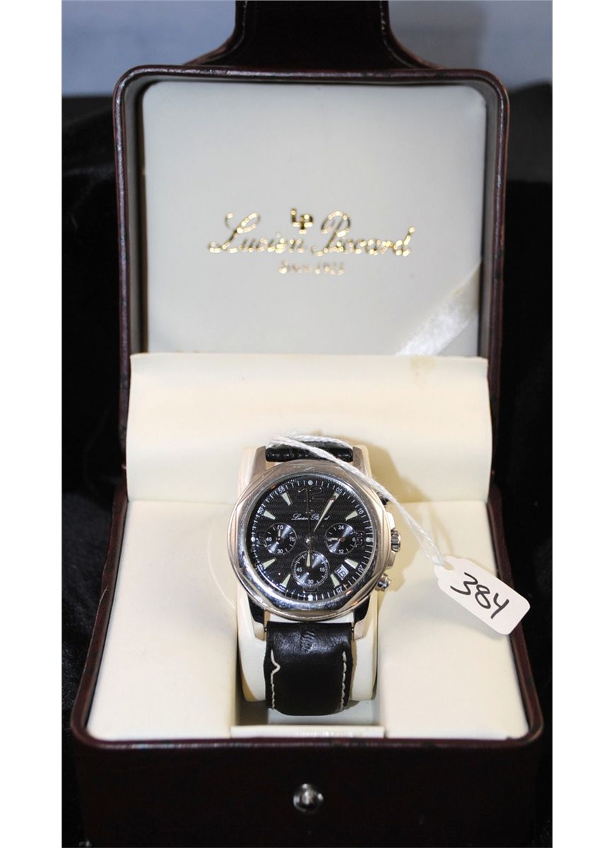 MANS LUCIEN PICCARD CHRONOGRAPH WRISTWATCH - BLACK FACE WITH ORIGINAL BOX