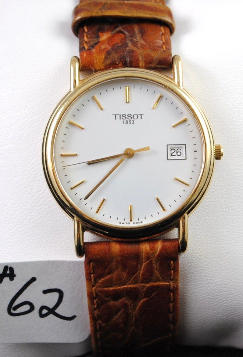 MANS "TISSOT" 18K YELLOW GOLD WRISTWATCH - CLASP MARKED "TISSOT" - DATE - RUNNING FINE - APPRAISED NEW RETAIL REPLACENT IS $5,000.00 - JEWELERS APPRAISAL CARD COMES WITH THE WATCH "GREAT CHRISTMAS GIFT"