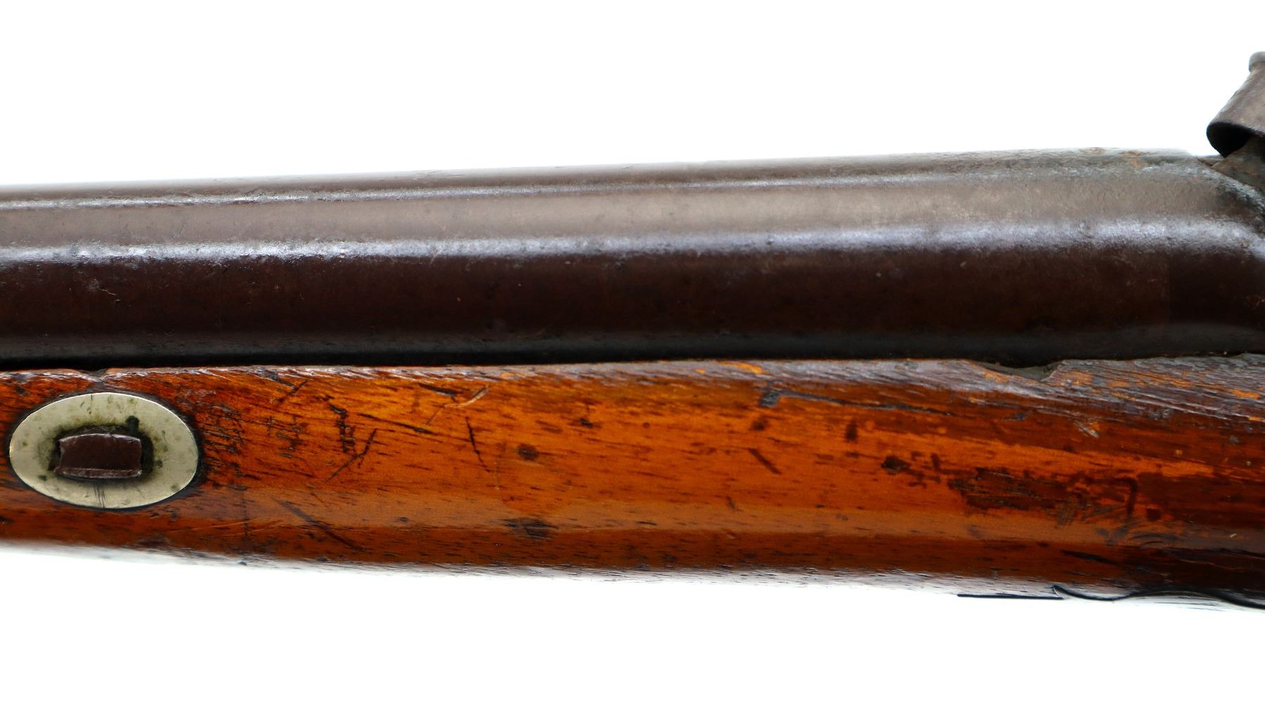 Wear: Metal finish turning brown with pitting, rust, scratches, handling marks and wear. Stocks show marks, scratches and wear.