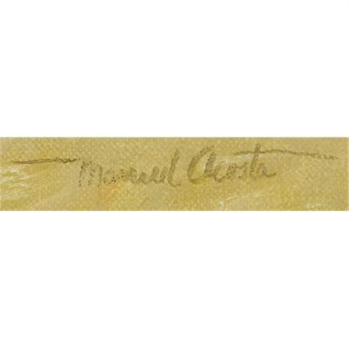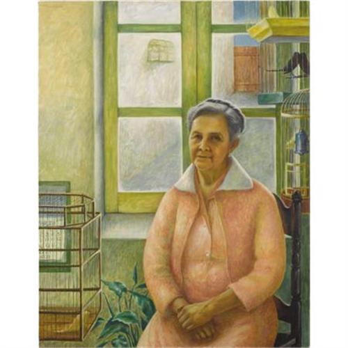 <B>MANUEL ACOSTA (1921-1989)</B></I><BR><I>La Ventana Amarilla</B></I><BR>Oil on canvas<BR>48 x 36 inches (121.9 x 91.4 cm)<BR>Signed upper left<BR>Signed and titled verso<BR><BR> Manuel Acosta grew up in the barrios of El Paso. After World War II, he attended the College of Mines and Metallurgy (now UTEP), and then a year at the Chouinard Art Institute. Upon returning to El Paso, he became Peter Hurd's mural assistant. As one of America's leading regionalist painters, Hurd encouraged Acosta to embrace his Mexican American heritage in his work. Subsequently, the people and scenes of El Paso's barrios became Acosta's primary subject matter, and to his credit, Acosta became Texas' leading interpreter of Mexican American way of life in Texas.<BR><BR>This painting is of a neighbor and friend of Manuel Acosta. Her yellow kitchen, filled with the sweet chirping sounds of parakeets, was a place of gathering and social discourse. Outside the window is the typical courtyard found in Mexican influenced homes in the Southwest. Seated in her chair is the benevolent queen of the household, hands peacefully crossed in her soft pink housedress.<BR><BR>Acosta is the master visual storyteller, recording the colors, people, and life of his beloved El Paso.<B>Condition Report:</B> Excellent condition. Unframed.<BR><BR><b>Shipping:</b> Requires 3rd Party Shipping (<a target="_blank" href="http://www.heritageauctions.com/common/shipping.php">view shipping information</a>)