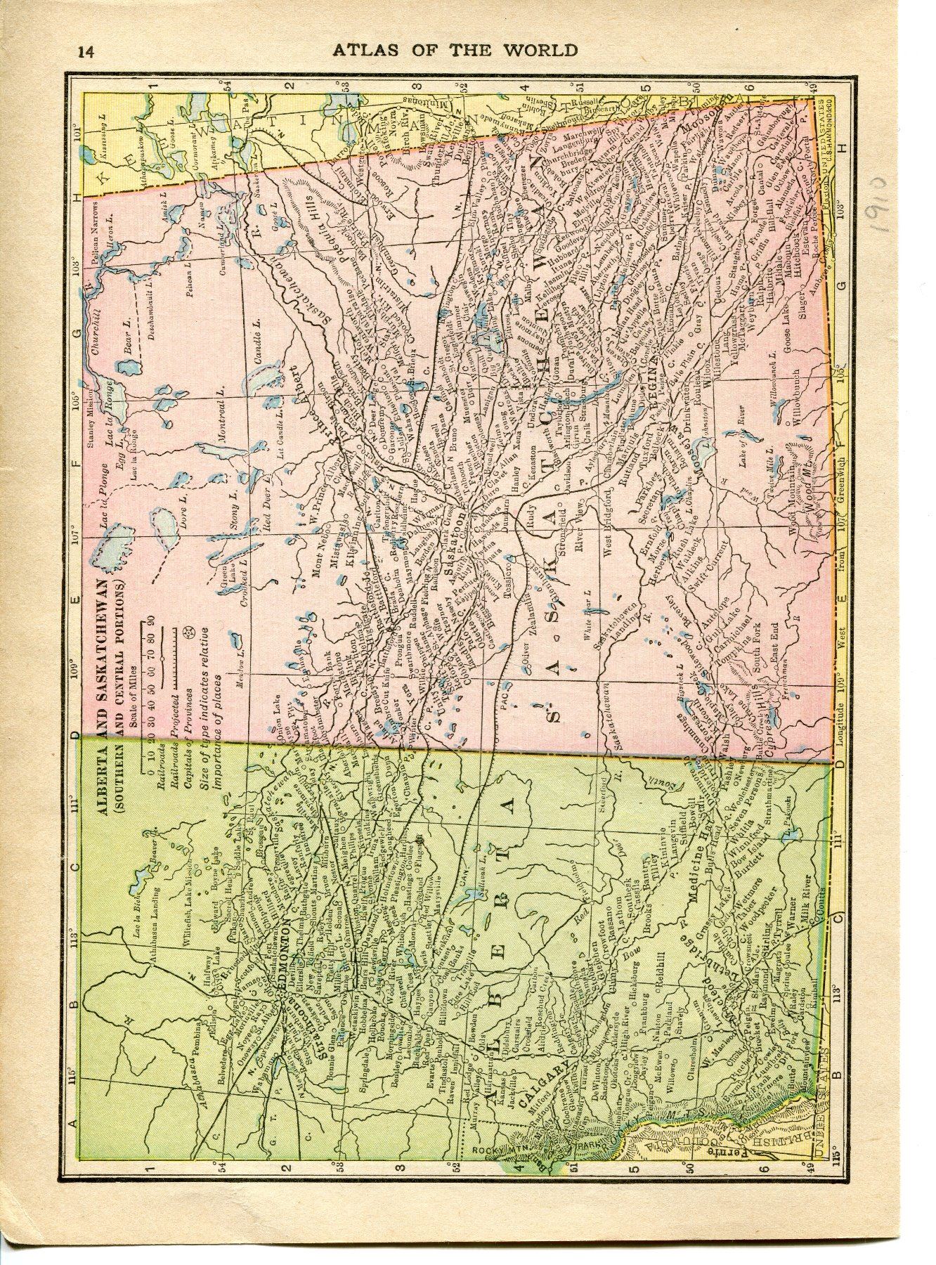 MAP OF ALBERTA, MANITOBA AND SASKATCHEWAN 1910