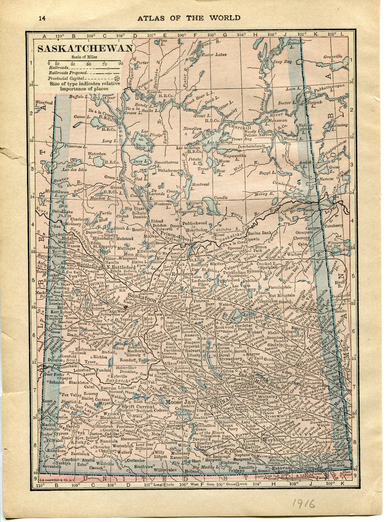 MAP OF SASKATCHEWAN AND MANITOBA 1916