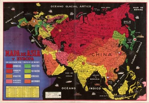 MAPA DE EUROPA Y ASIA CON CLASIFICACION POLITICA. 1937. 110x77cm. (43x30,2in.). Litografía. A-. Muy raro.