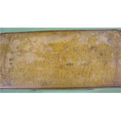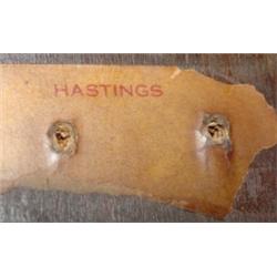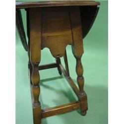 MAPLE BUTTERFLY DROP-LEAF TABLE. Top shows major surface staining and wear. Label on bottom of table reads "Hastings". Thumb molding around outside edge. 28" H, 32" L, 13.25" W (closed), 33.25" W (open)
