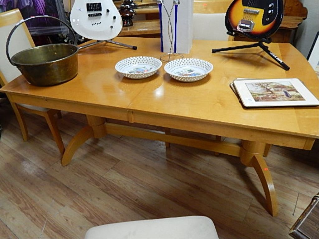 MAPLE DINING TABLE - LARGE - DOUBLE PEDESTAL AND 2 LEAFS
