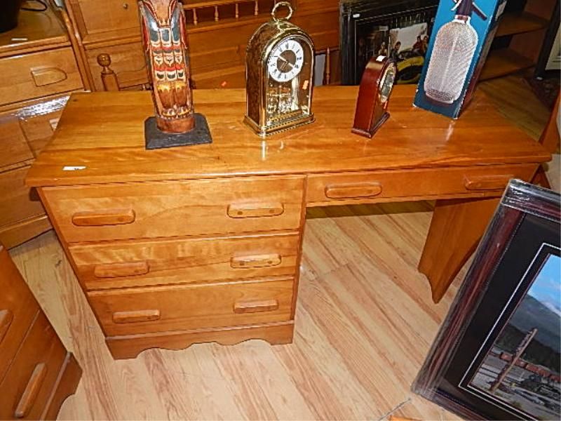 MAPLE SINGLE PEDESTAL DESK WITH 4 DRAWERS
