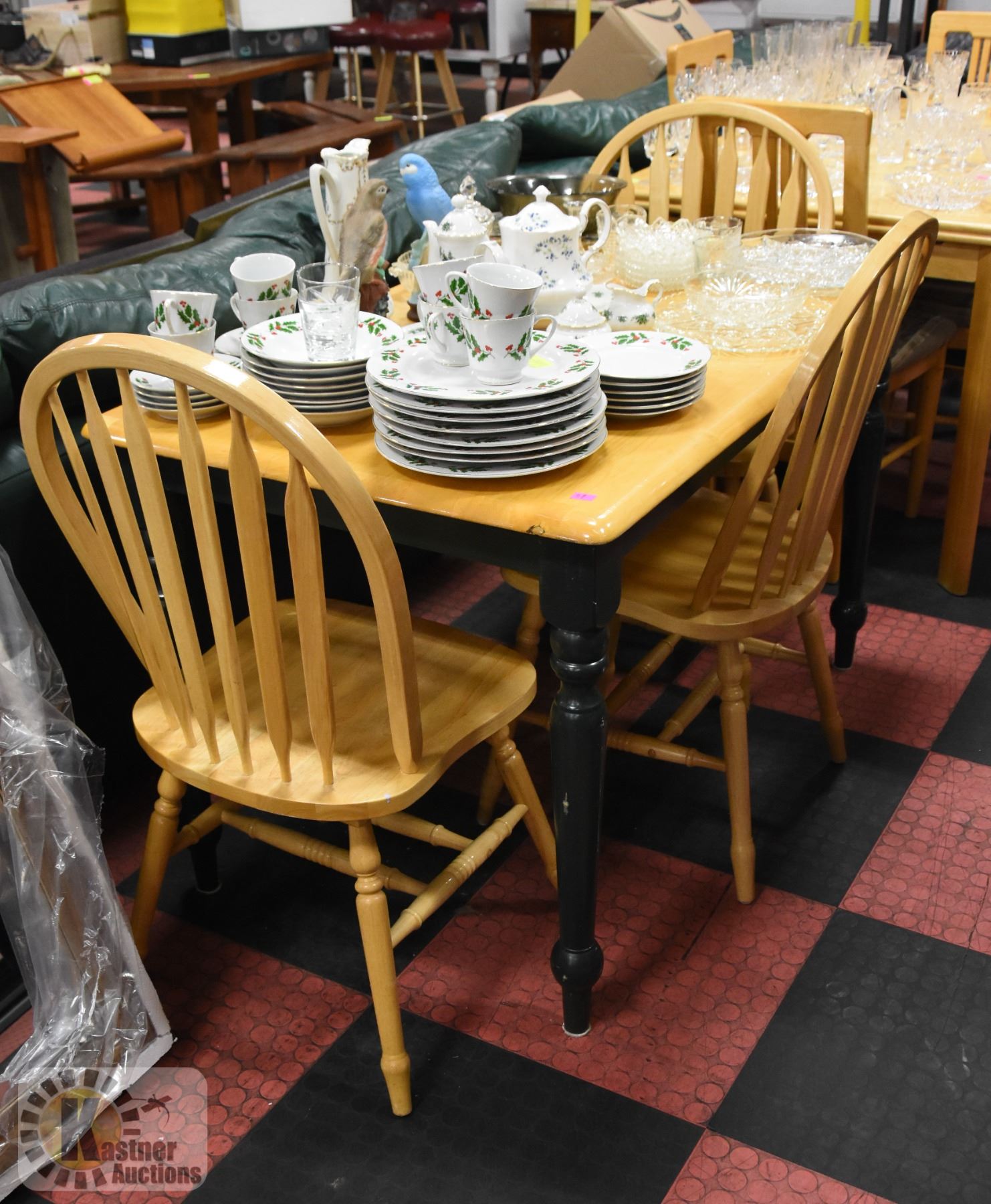 MAPLE TABLE WITH 3 ARROWBACK CHAIRS