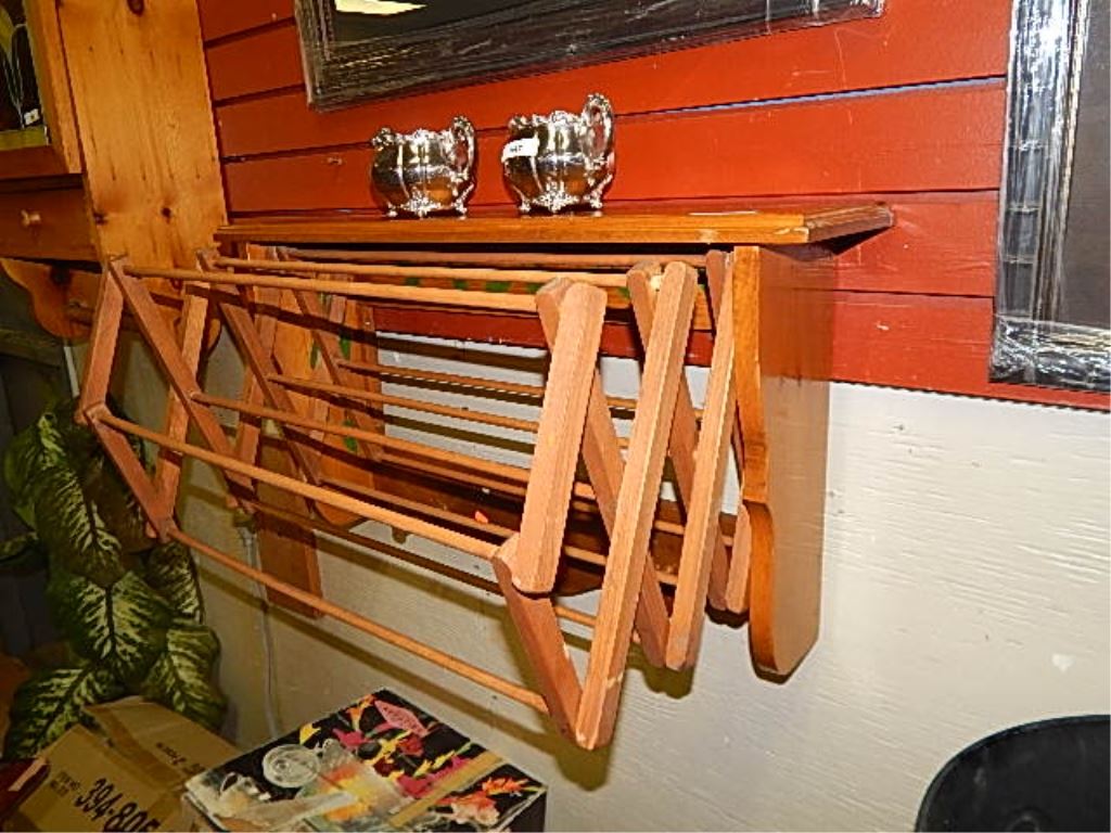 MAPLE WALL SHELF WITH PULL OUT HANGING UNIT AND HOOKS