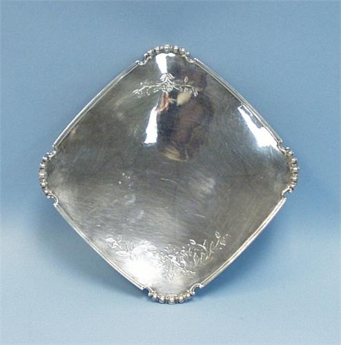 MAPPIN and WEBB - An English sterling silver cake dish. Hallmarked for Sheffield, 1938. 10" square.