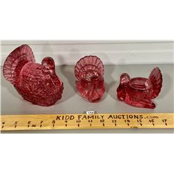 LOT OF 3 NESTING TURKEYS IN CRANBERRY GLASS