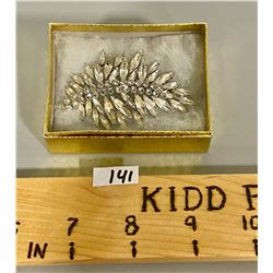 SIGNED SHERMAN RHINESTONE LEAF DESIGN BROOCH