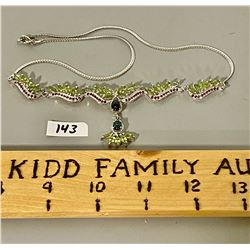 BLACK OPAL / PERIDOT / RUBY NECKLACE SET IN .925 SILVER