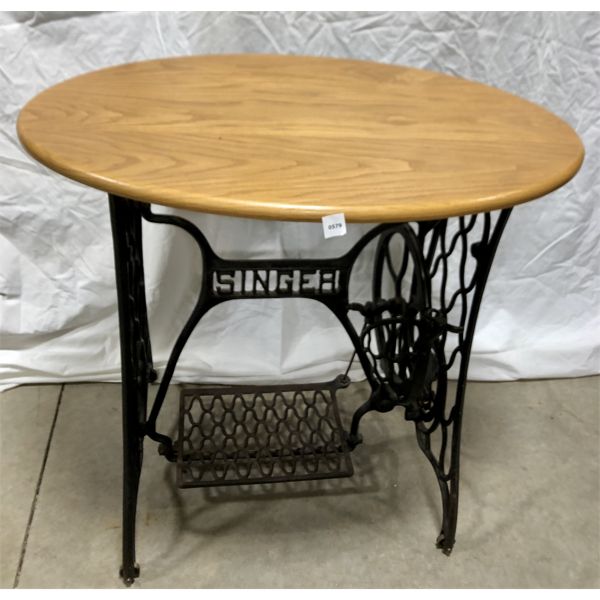 CAST IRON SINGER SEWING MACHINE BASE WITH OVAL WOOD TOP