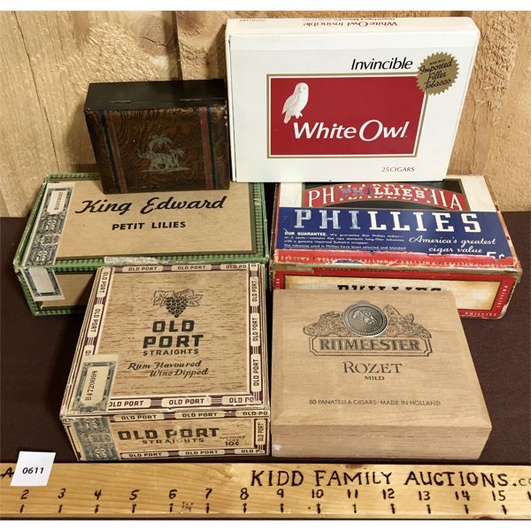 LOT OF 6 - MISC CIGAR BOXES - KING EDWARD, RIMEESTER, WHITE OWL ECT.