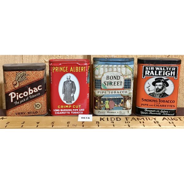 LOT OF 4 - POCKET TOBACCO TINS - PICOBAC, PRINCE ALBERT, BOND STREET ECT.
