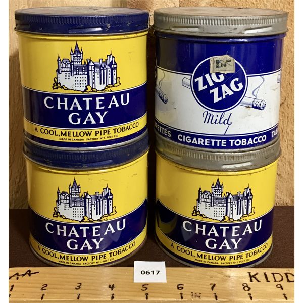 LOT OF 4 - TOBACCO TINS - ZIG ZAG AND CHATEAU GAY