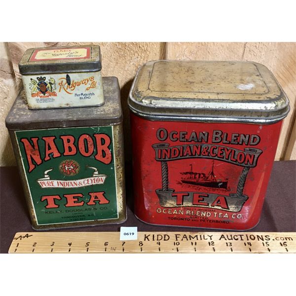 LOT OF 3 - TEA TINS - OCEAN'S BLEND, NABOB AND RIDGWAYS