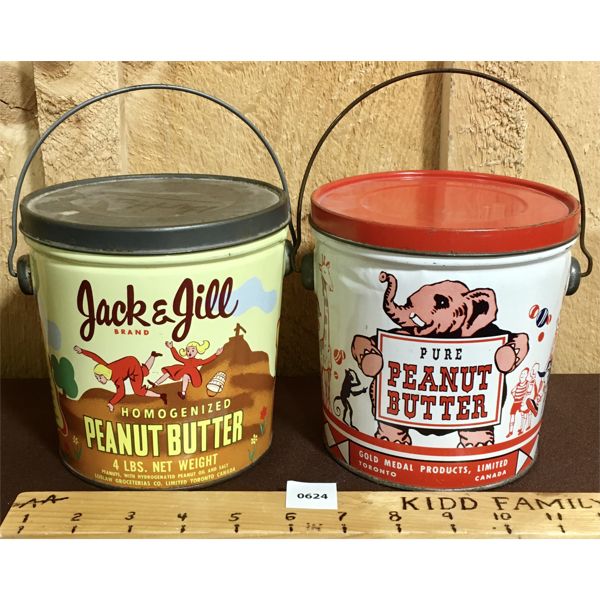 LOT OF 2 - PEANUT BUTTER TINS - JACK & JILL AND PURE