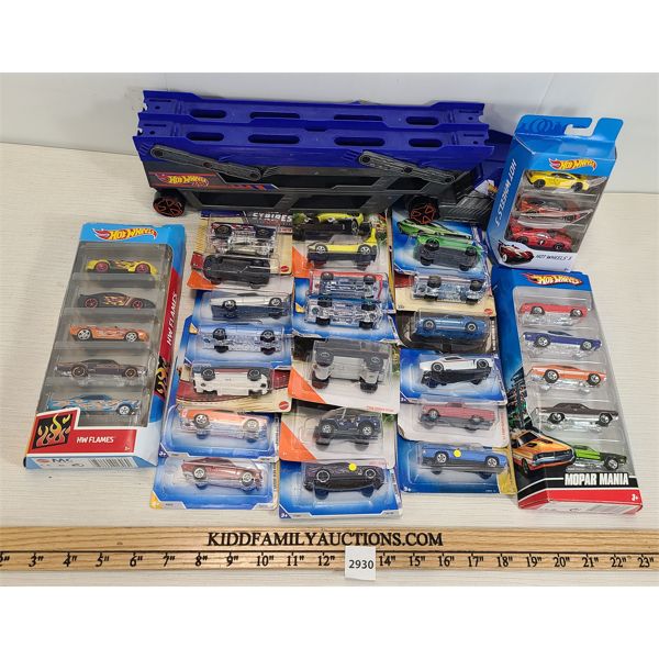 LOT OF 4 - HOT WHEELS CARRYING CASE, TRUCK W/ TRAILER & BILLIONTH CAR TROPHY
