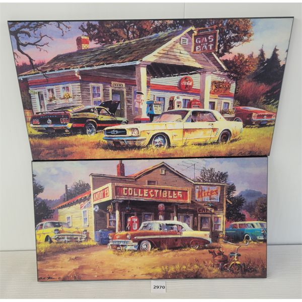 LOT OF 2 - RETRO SERVICE STATION PLAQUES - CHEVY & FORD