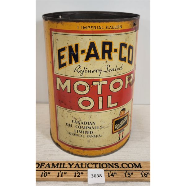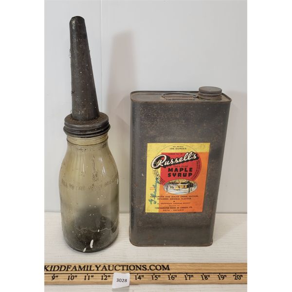 LOT OF 2 - MOTOR OIL BOTTLE & RUSSELL'S MAPLE SYRUP TIN