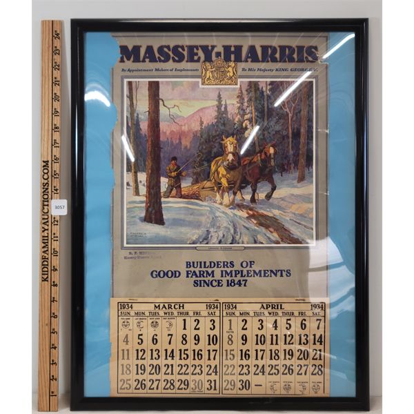 1934 FRAMED MASSY-HARRIS CALENDAR