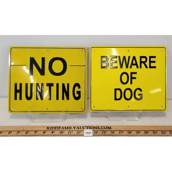 LOT OF 2 - NO HUNTING & BEWARE OF DOGS SIGNS