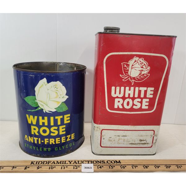 LOT OF 2 - WHITE ROSE 1 GAL CANS - INCL ANTI-FREEZE & OIL