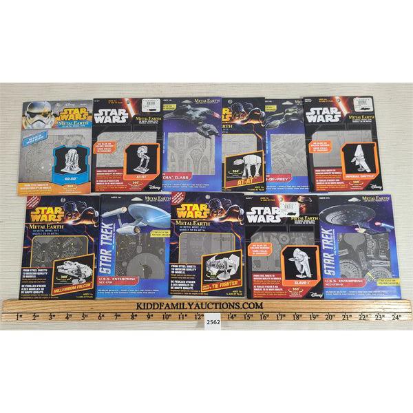 LOT OF 11 - METAL EARTH 3D MODEL KITS - STARWARS & STARTREK INCL. MILLENIUM FALCON & USS ENTERPRISE