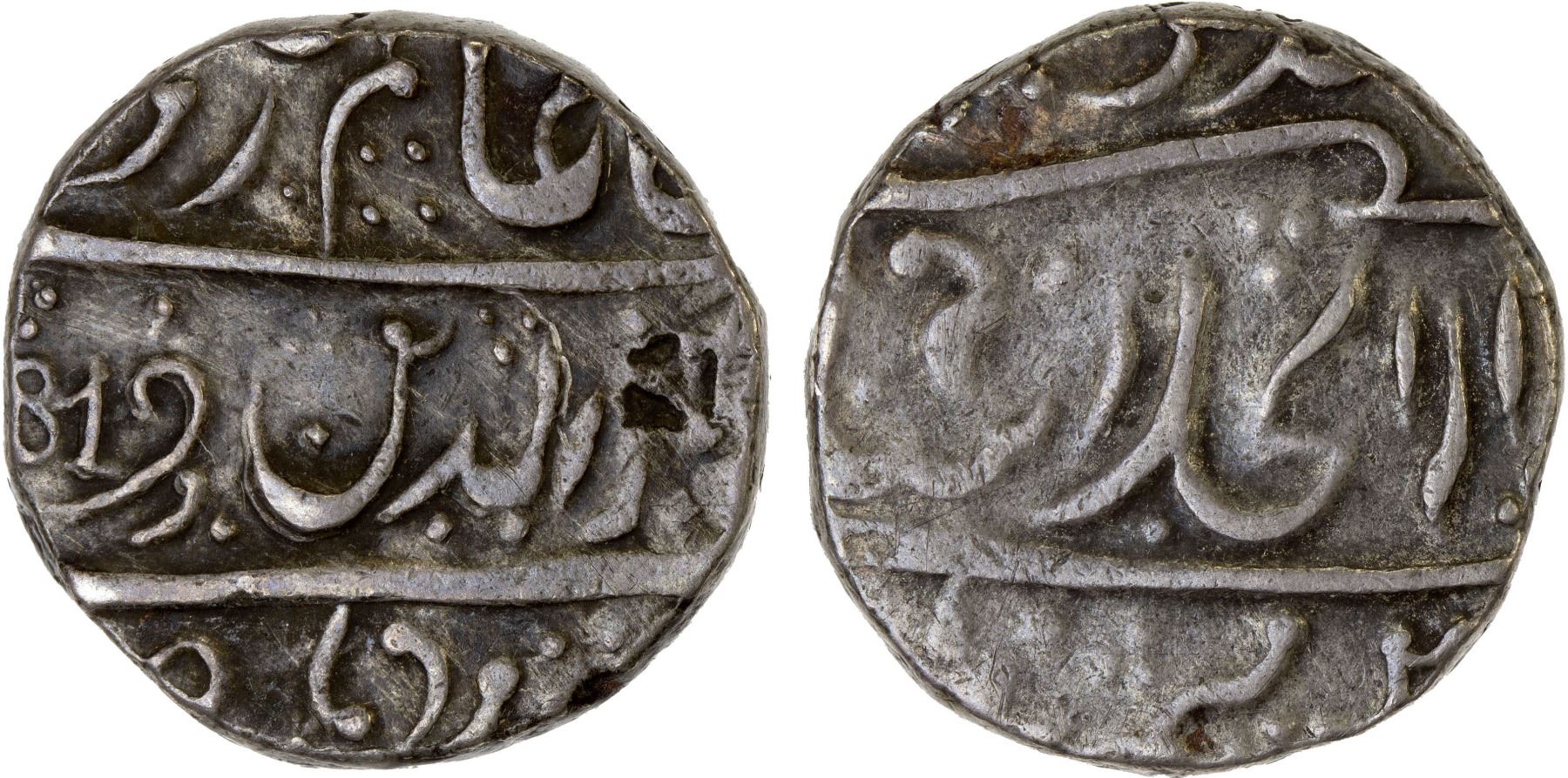 MARATHA CONFEDERACY: Bagalkot, AR rupee (1)819, KM-271, struck under the authority of the East India Company, one shroff mark, About VF.