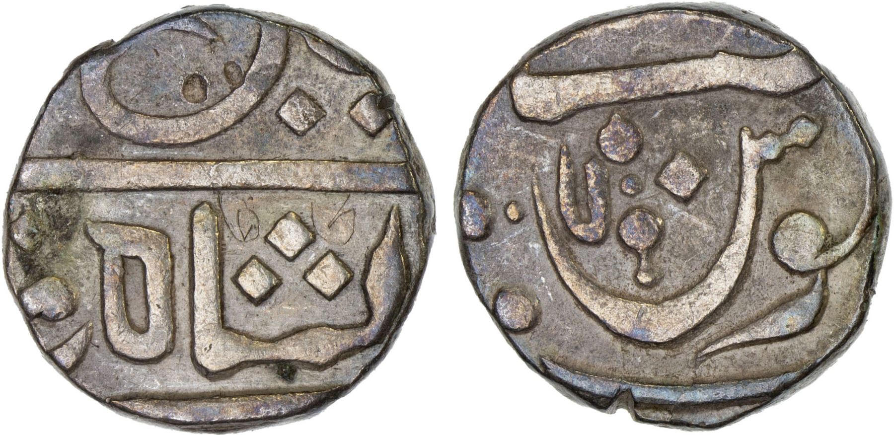 MARATHA CONFEDERACY: Pune, AR 1/2 rupee, ND, KM-211, ankus symbol, graffiti in obverse field, choice VF.
