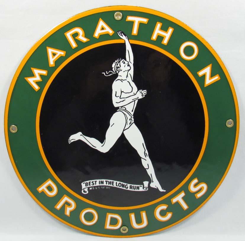 MARATHON PRODUCTS PORCELAIN AND METAL ADVERTISING SIGN
