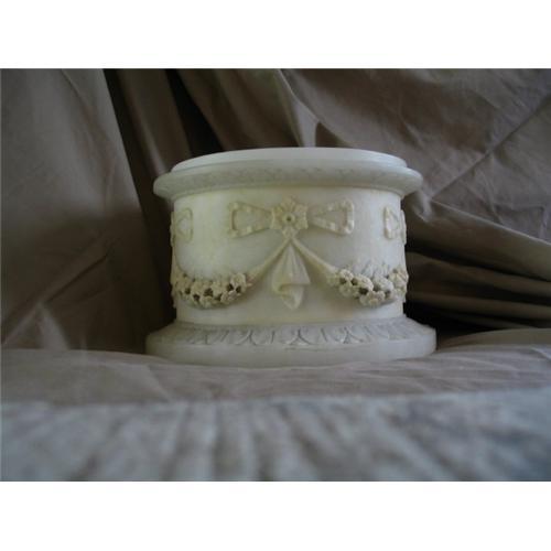 Stunning detailing shows how capable the artistian was for this remarkably created piece of marble. Marks of the stone cuters tool carving out the expensive marble are plainly visable on the bottom of this gorgeous marble. The dainty flowers coupled with the full bows just add to the allure of this gem in marble. Marble created to a higher standard is seen in this remarkable peice of artwork.