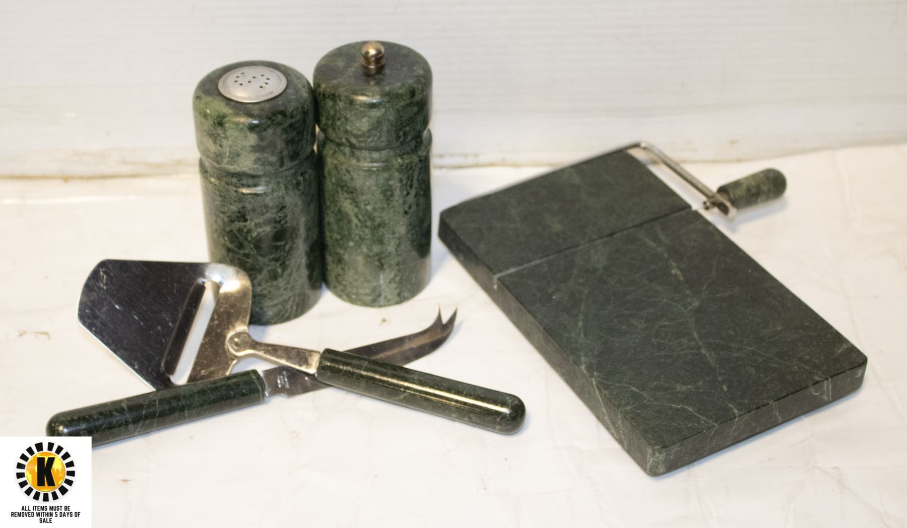 MARBLE CHEESE CUTTER SALT PEPPER SHAKERS GREEN
