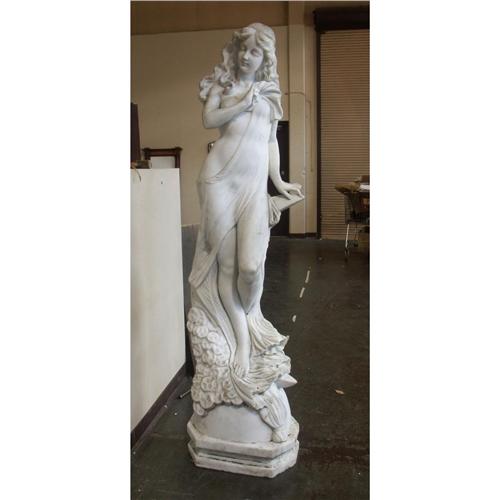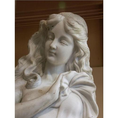 STATUARY: White marble allegorical female figure statue, note normal surface discoloration from outdoor display, 80'' x 23''.