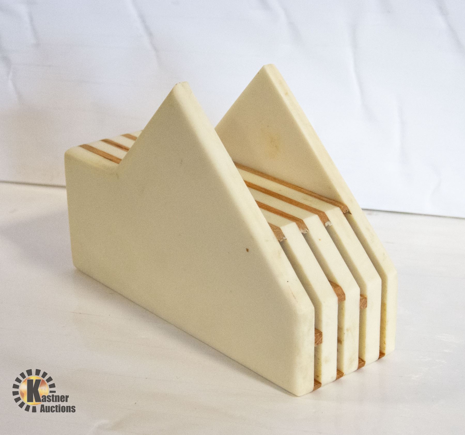 MARBLE KNIFE BLOCK W/ WOOD INLAY