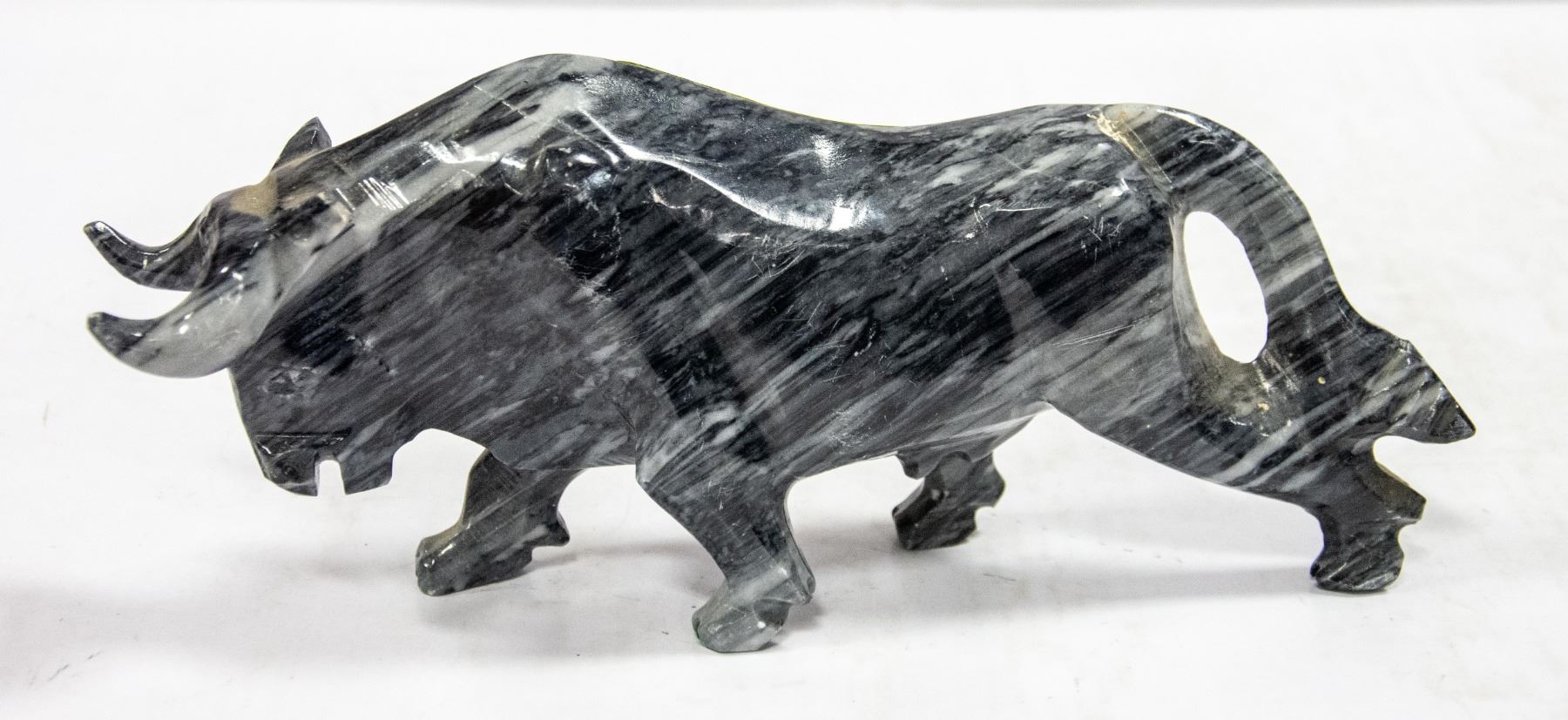MARBLE STONE BULL DECOR PIECE, 11 X 5