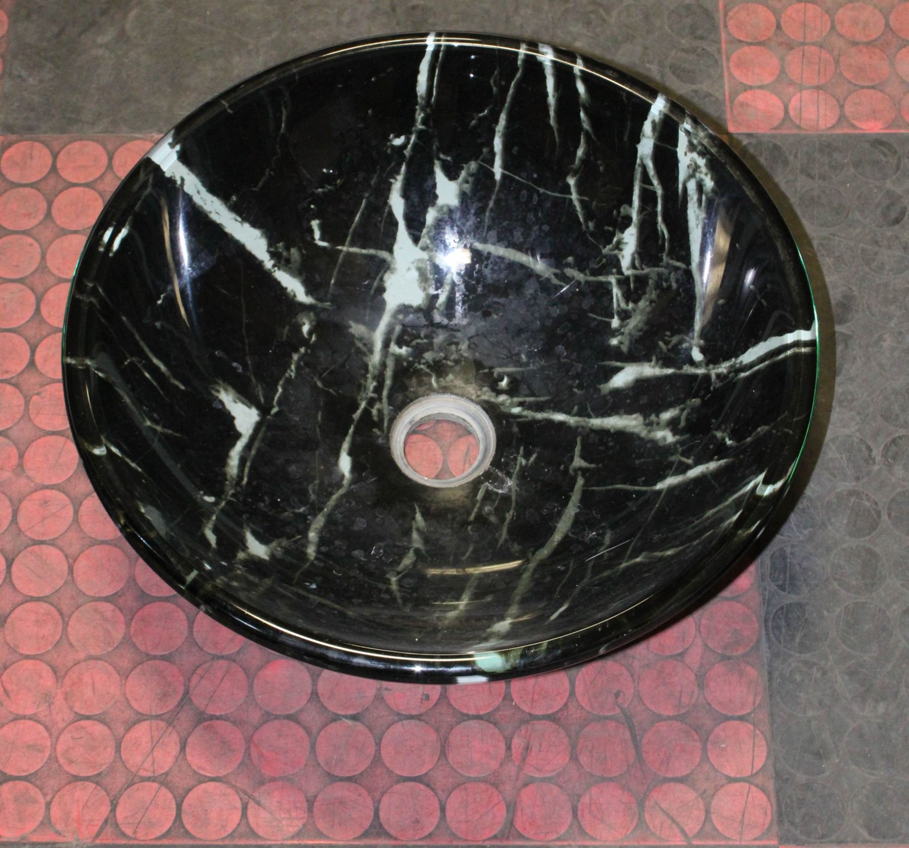 MARBLE-STYLE GLASS VESSEL SINK 16.5" ROUND, H-6"