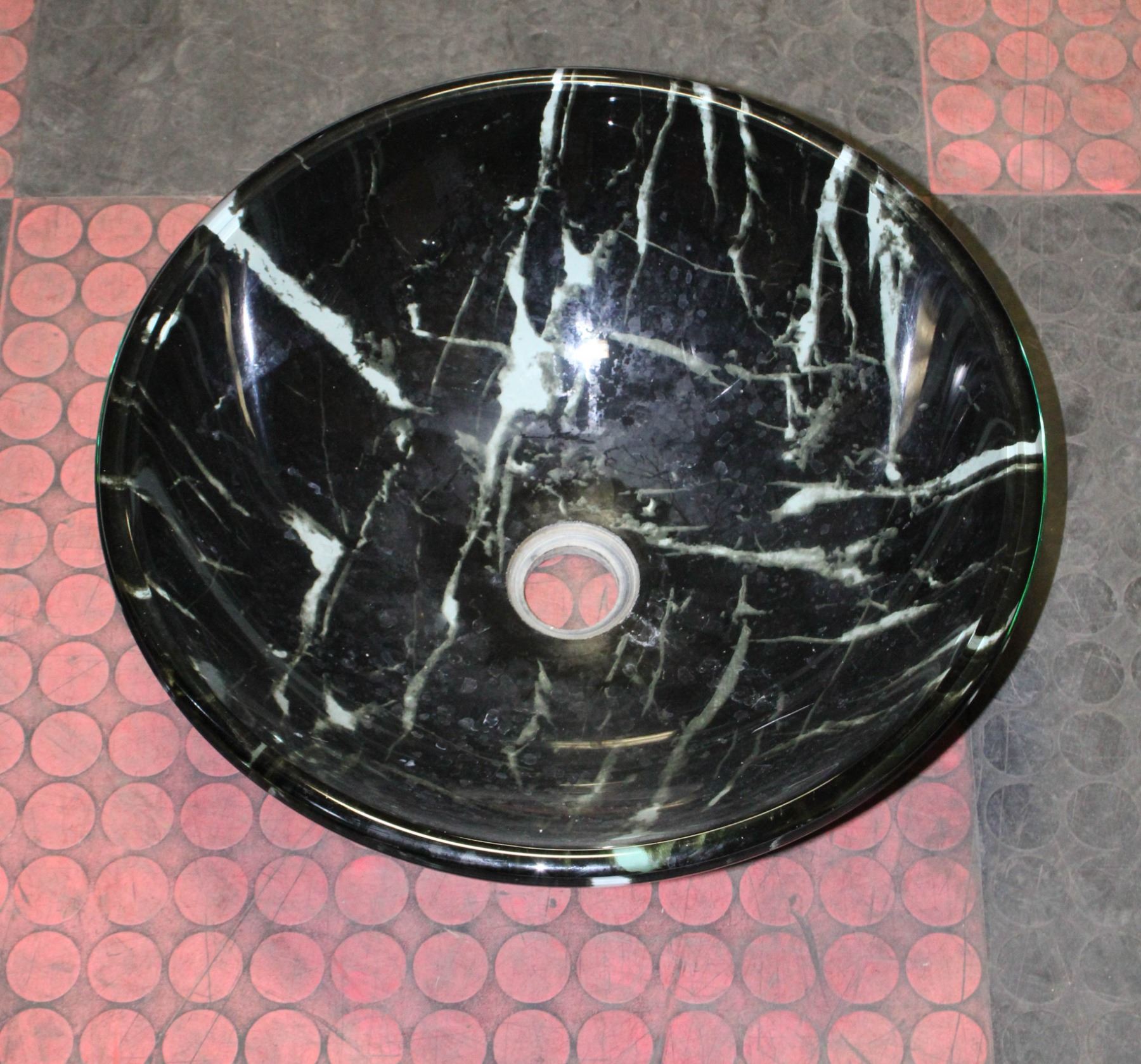 MARBLE-STYLE GLASS VESSEL SINK 16.5" ROUND, H-6"