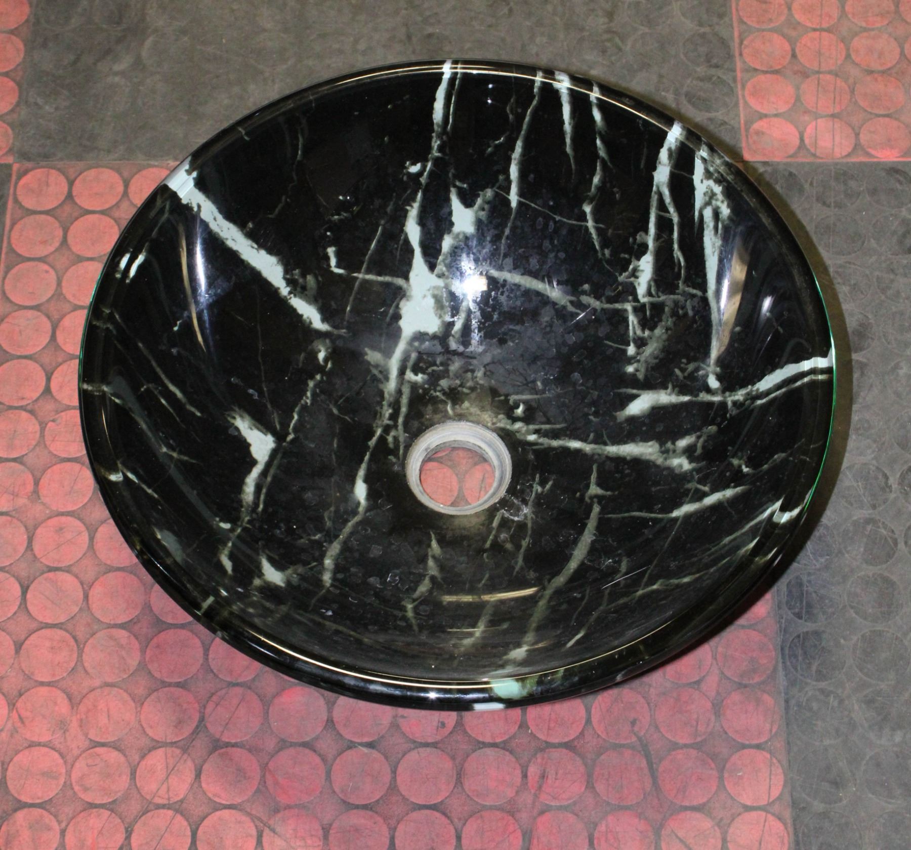 MARBLE-STYLE GLASS VESSEL SINK 16.5" ROUND, H-6"