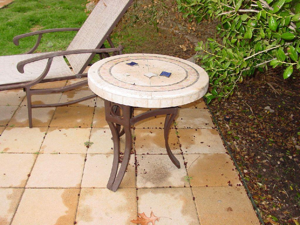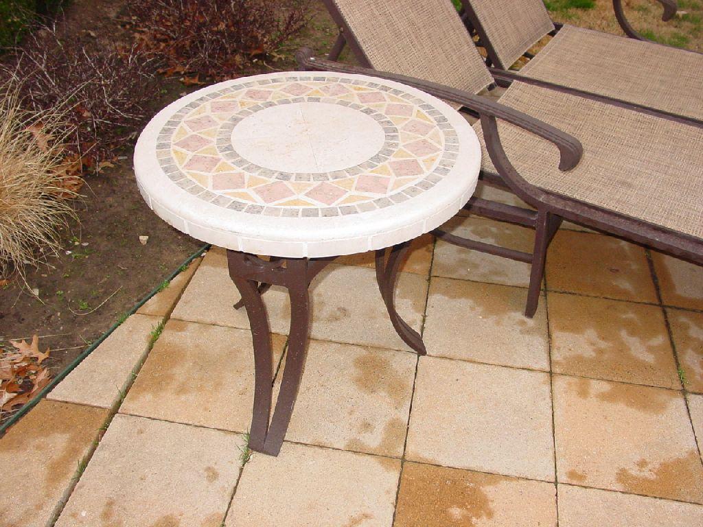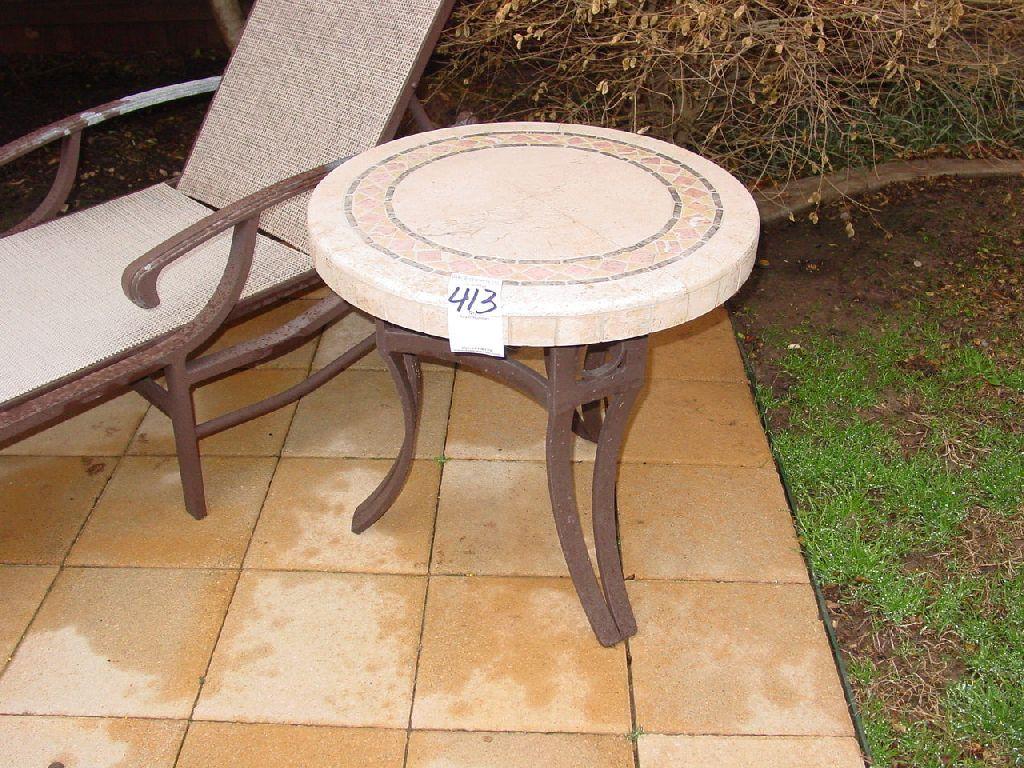 MARBLE TOP IS "DIAMANTE" TOSCANA, BASE IS MALLIN, FROM FLOWER CITY MARBLE TOP, METAL BASE SIDE TABLES (3X)