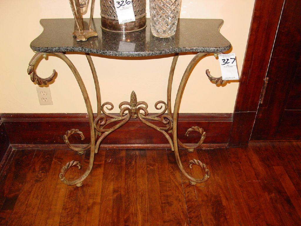 MARBLE TOP, METAL BASE ACCENT TABLES MARBLE TOP IS GREEN; METAL BASE IS BRUSHED FINISH (2X)