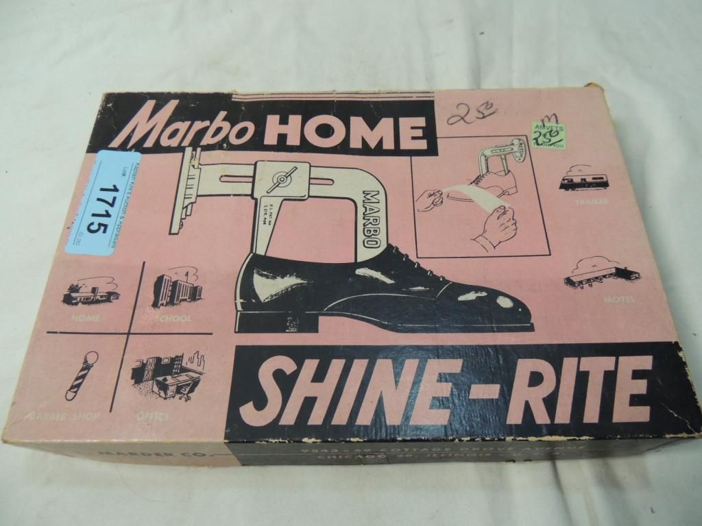 MARBO HOME SHINE RITE SHOE SHINE STAND. METAL POST ON WALL SHOE MOLD SHOE SHINE. AS SHOWN SEE PHOTO FOR MORE DETAILS.