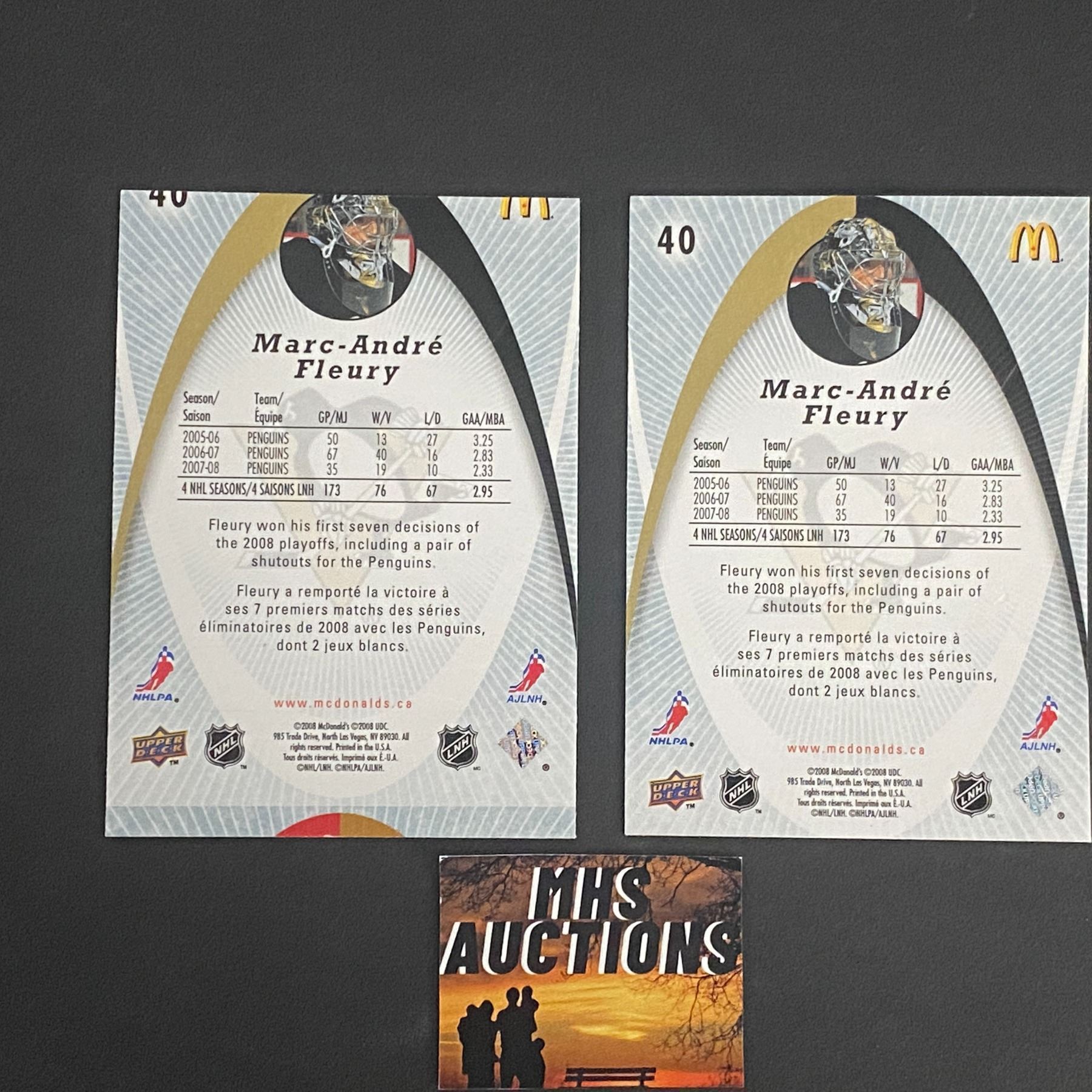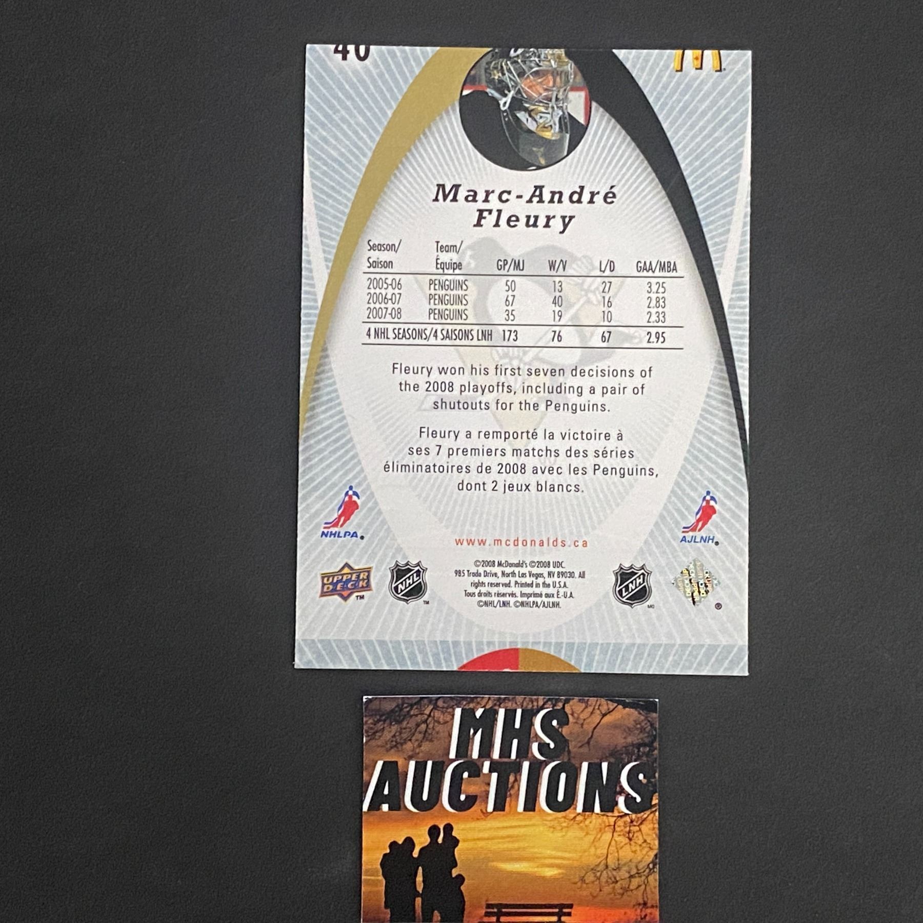 MARC-ANDRE FLEURY 2008 MCDONALDS "ERROR CUT MISTAKE CARD" VERY RARE CARD