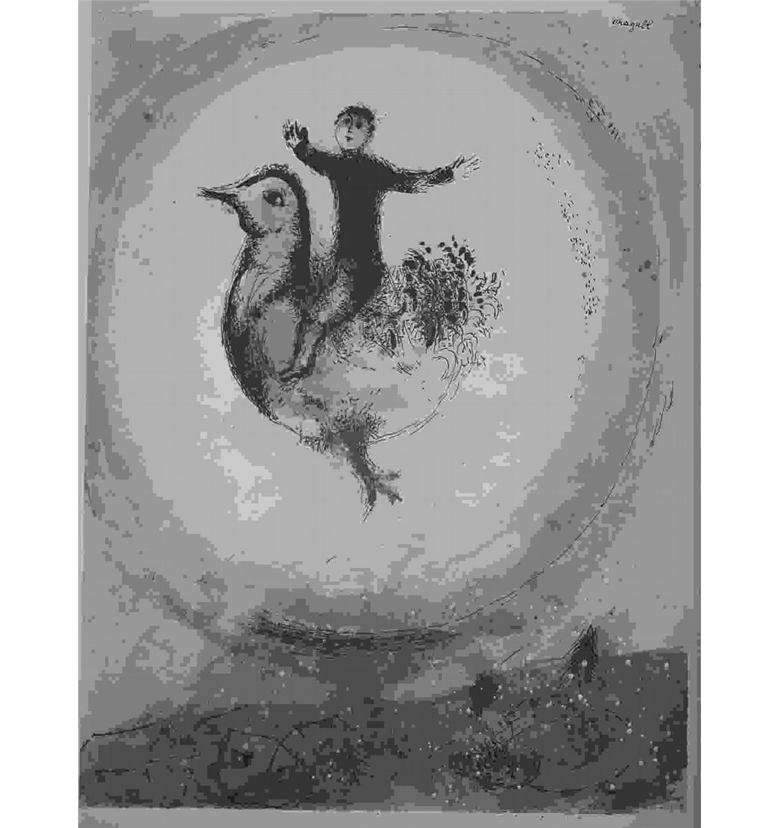 MARC CHAGALL 1952 ANTIQUE FIRST EDITION LITHOGRAPH - PUBLISHED 1952 IN ERETZ ISRAEL FOR THE 1ST EDITION OF THE RARE HEBREW-YIDDISH-RUSSIAN-JEWISH POETRY BOOK "SIBERIA" BY ABRAHAM SUTZKEVER ILLUSTRATED BY MARC CHAGALL - IMAGE SIZE APPX 9.5" X 12.25" - PROFESSIONALLY FRAMED & MATTED - SIGNED IN THE PLATE