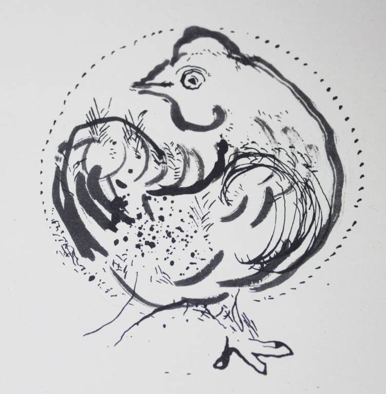 MARC CHAGALL 1952 ANTIQUE FIRST EDITION LITHOGRAPH - PUBLISHED 1952 IN ERETZ ISRAEL FOR THE 1ST EDITION OF THE RARE HEBREW-YIDDISH-RUSSIAN-JEWISH POETRY BOOK "SIBERIA" BY ABRAHAM SUTZKEVER ILLUSTRATED BY MARC CHAGALL - IMAGE SIZE APPX 4.5" X 4" - PROFESSIONALLY FRAMED & MATTED
