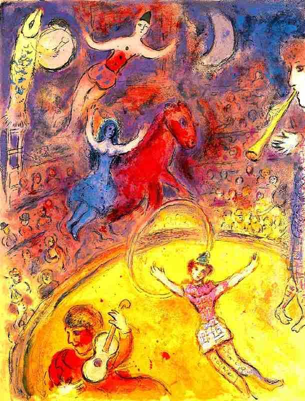 MARC CHAGALL "CIRCUS" - LIMTED EDITION GICLEE' ON HEAVY ARCHIVAL WOVE PAPER - NUMBERED IN PENCIL - SIGNED IN THE PLATE - PROFESSIONALLY FRAMED AND MATTED - MINT - 15" X 11" APPX PAGE SIZE
