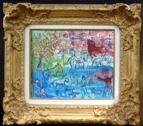 Marc Chagall En Ete stamped with the signature Marc Chagall, lower right tempera on board 15 x 18 1/8 (38 x 46 cm) 1983 accompanied by jean-Louis Prat certificate # 96586 and Lowy condition report PROVENANCE: Estate of Chagall, Saint-Paul de Vence Private Collection, New Hampshire Private Collection,