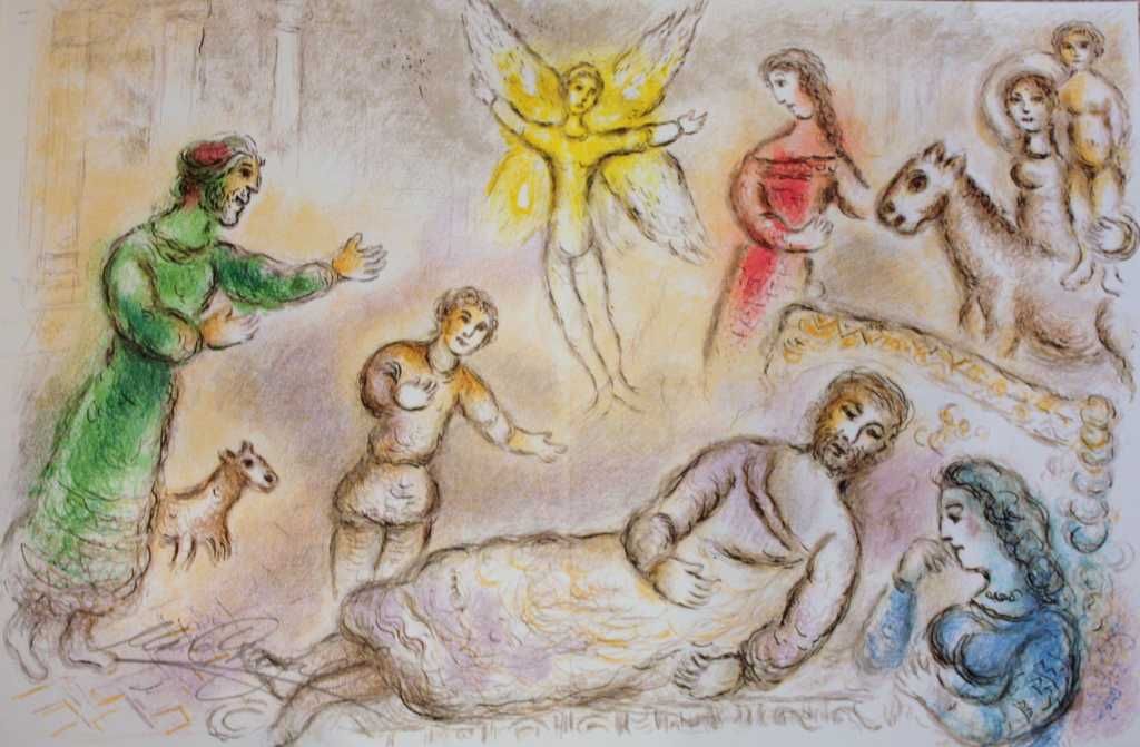 MARC CHAGALL HAND SIGNED ORIGINAL LITHOGRAPH - FROM HOMER'S DIE ODYSSEY - PROFESSIONALLY FRAMED AND MATTED - APPX IMAGE SIZE 15X23