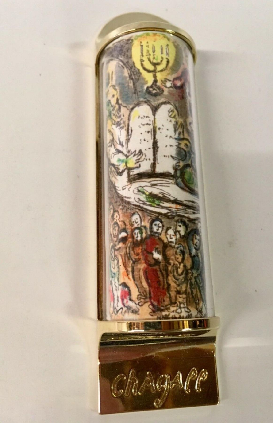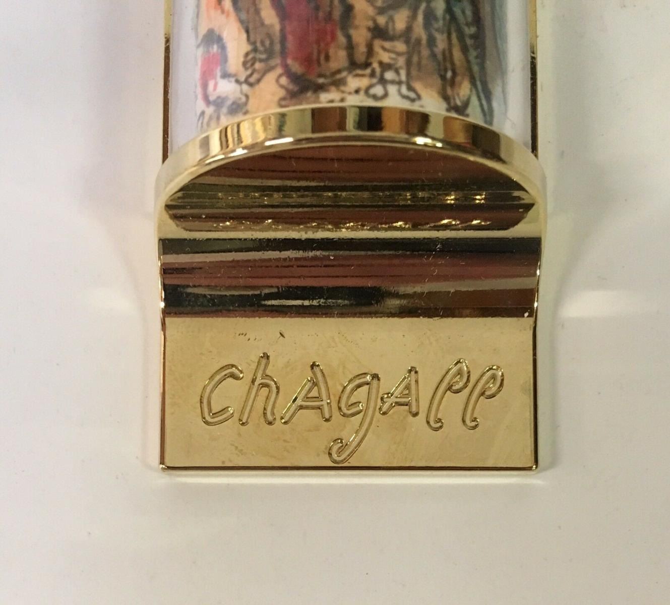 ARTIST: MARC CHAGALL. TITLE: KING SOLOMON. MEDIUM: FULL COLOR SILKSCREEN ON 24K GOLD PLATED BRONZE. SIZE: APPROX 5" X 1.5" INCHES. EDITION: LIMITED EDITION. SIGNED: SIGNED IN PLATE. CERTIFICATE OF AUTHENTICITY INCLUDED. SUITABLE FOR 3IN/8CM PARCHMENT. PARCHMENT NOT INCLUDED